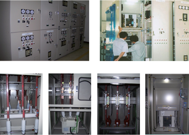 국·내외 관련규격에 의해 설계·제작 되며 공인인증기관의 개발시험을 통해 신뢰성, 안정성, 기능성에 역점을 두고 제작 됩니다. 특고압/고압 배전반 설비는 3.6KV/24KV용으로 차단기, 변성기, 보호 계전기, METER, SWITCH 등으로 구성되며, 안정성, 내장 기기의 신뢰성 향상, 설치면적 최적화, 미려한 외관 조건 등을 감안하여 설계/제작됩니다. ■ 고성능, 고신뢰성 VCB, GCB내장으로 고도의 안정성 보유 ■ 발전설비, 각종 PLANT성 산업설비 (제철, 화학, 섬유, 시멘트, 제지), 빌딩용, 상하수도, 동력설비 등의 전력 설비에 최적  |
